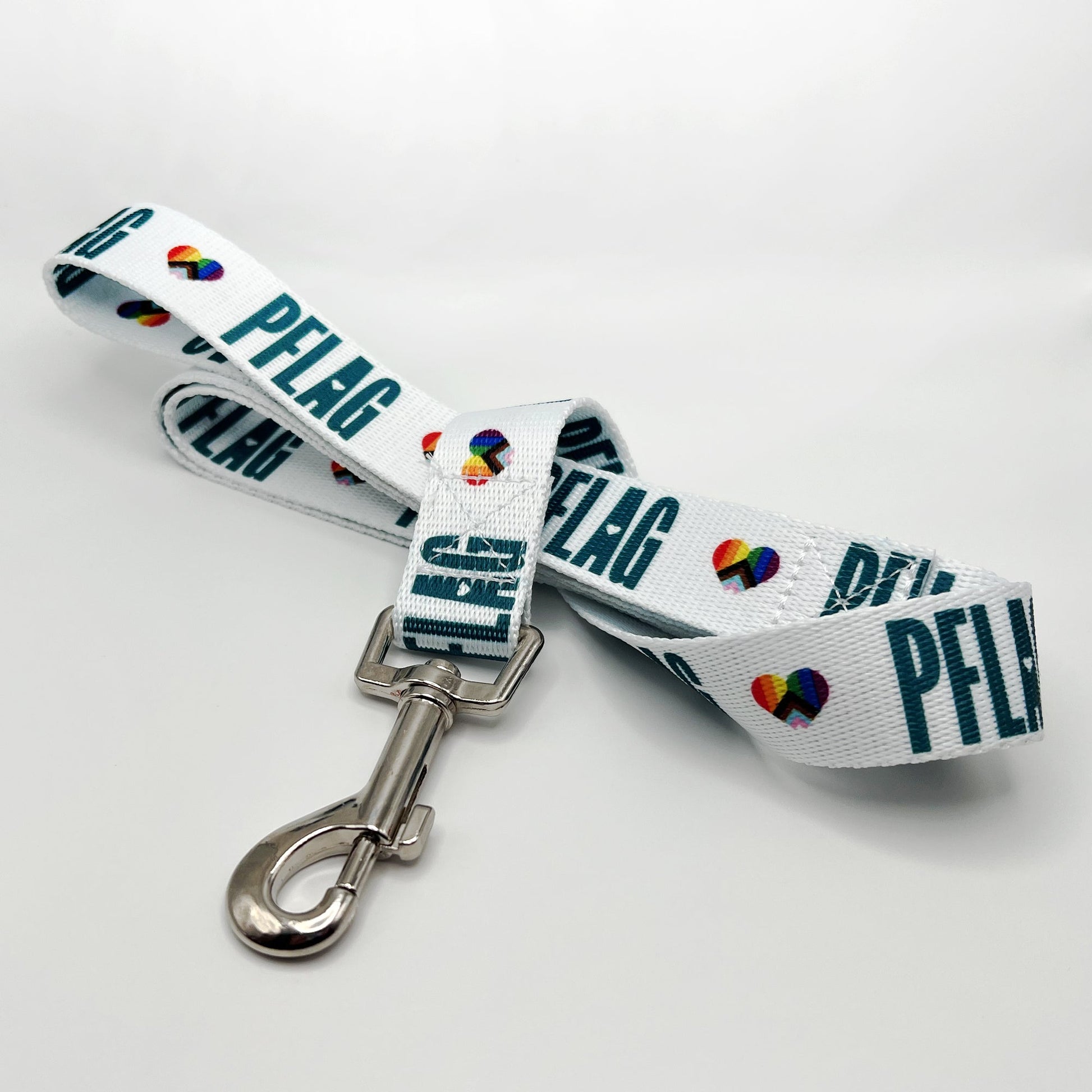 Let your pet join in the PFLAG Pride with one of these 47" long leashes. Two versions to choose from, made of polyester and heavy duty snap hardware.