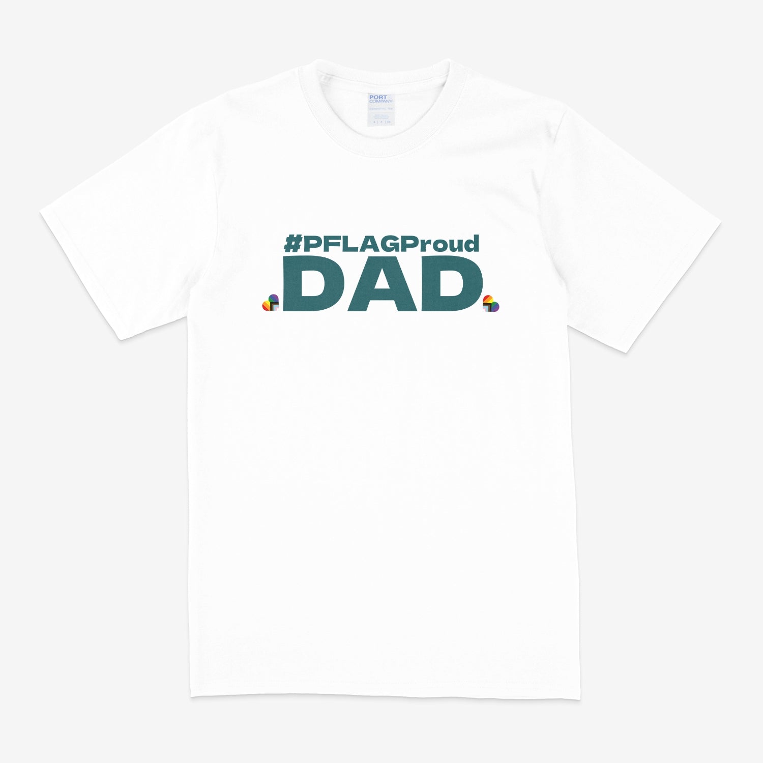 #PFLAGProud Dad - Wide-Cut Crewneck Short Sleeve White (Teal Logo) T-Shirt